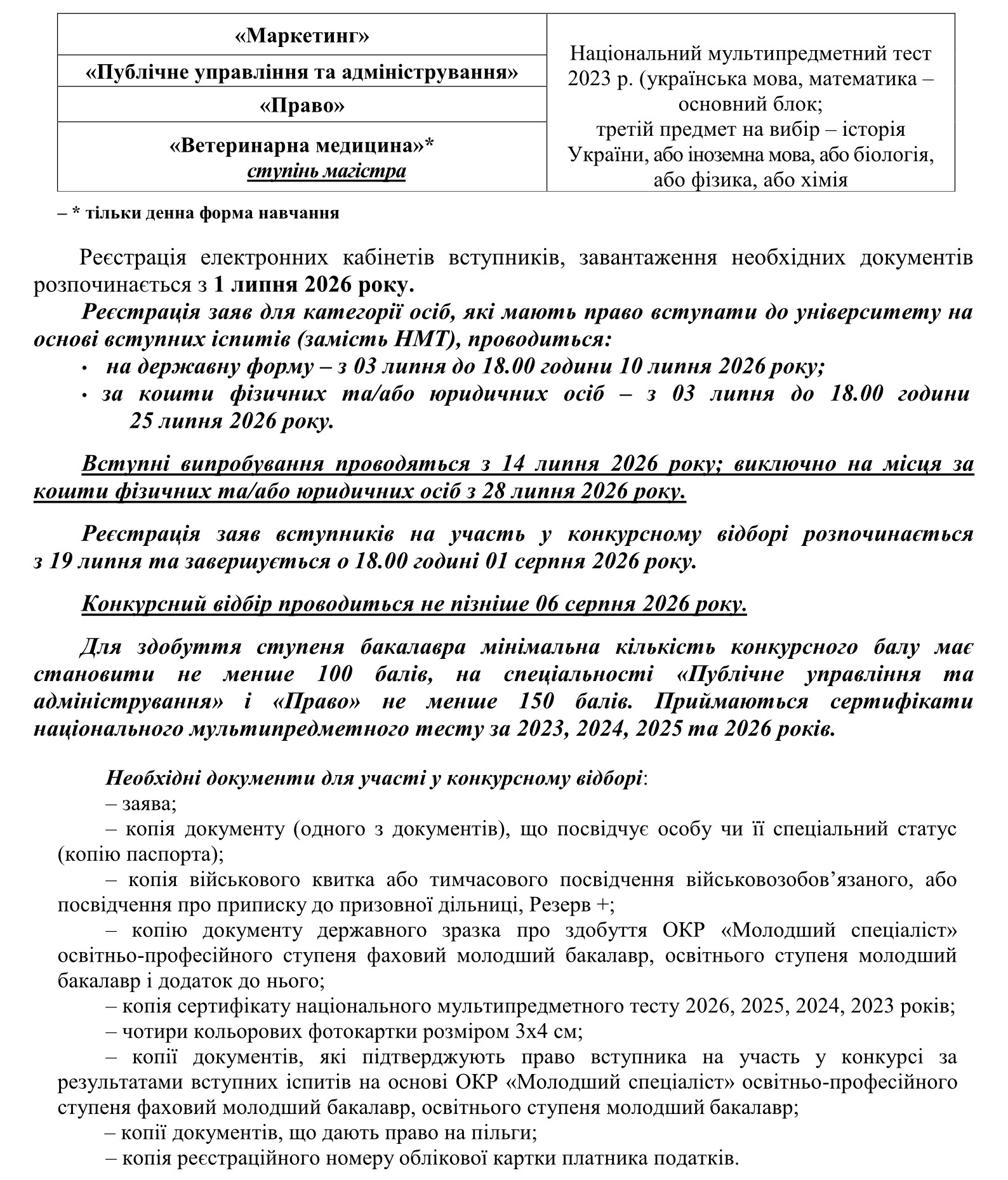Всі питання, пов’язані з прийомом до університету, вирішуються приймальною комісією.