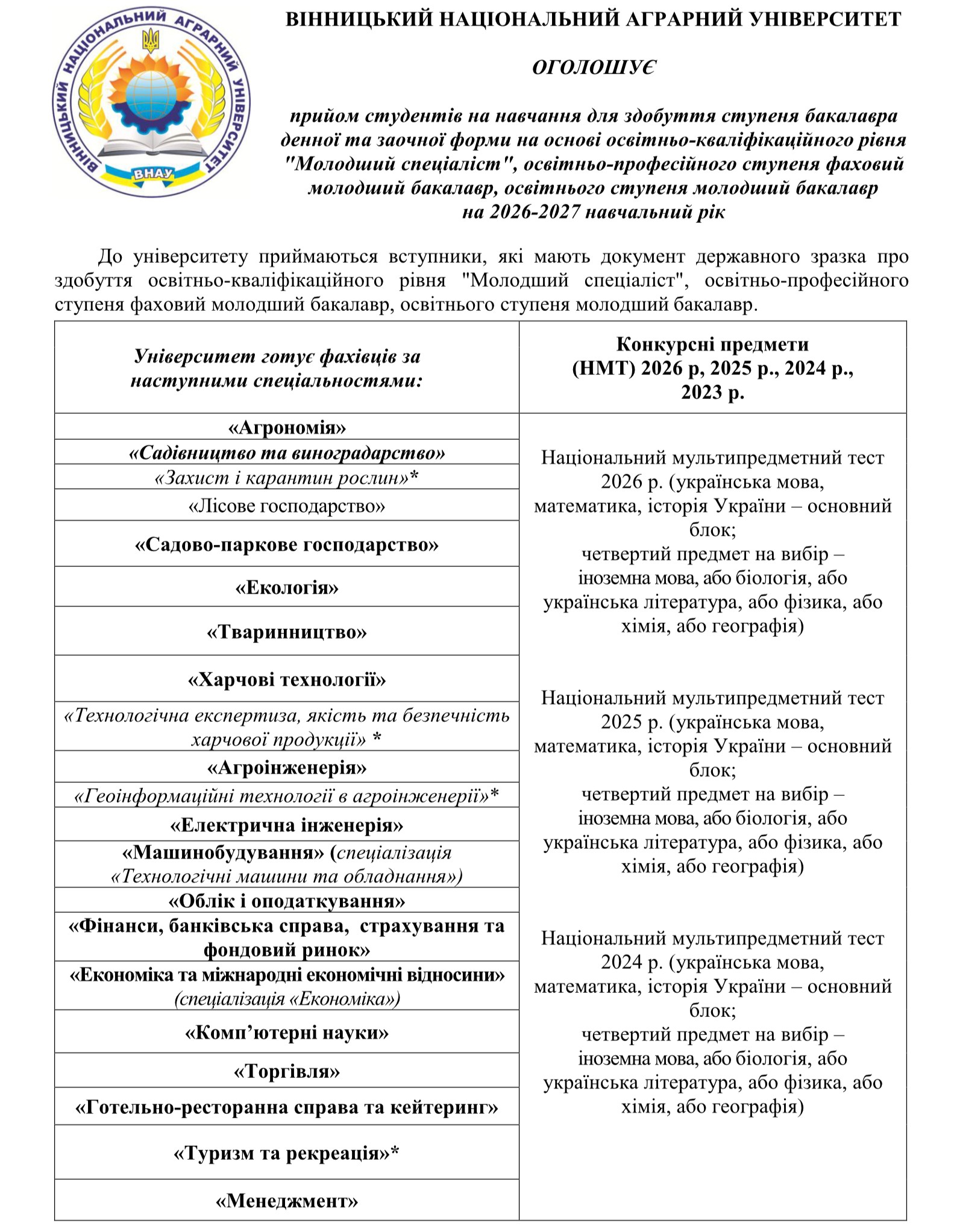 Вступ на основі ступеня "Молодший спеціаліст"