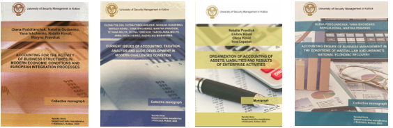 Polova O., Podolianchuk O., Gudzenkо N., Koval N., IshchenkoYa., Pravdiuk M., Mulyk T., Тomchuk O., Mulyk Ya., Kozachenko A., Mashevska А. Сurrent issues of accounting, taxation, analysis and audit development in modern challenges condition: collective monograph. Košice: Vysoká škola bezpečnostného manažérstva v Košiciach, 2022. 282 p.