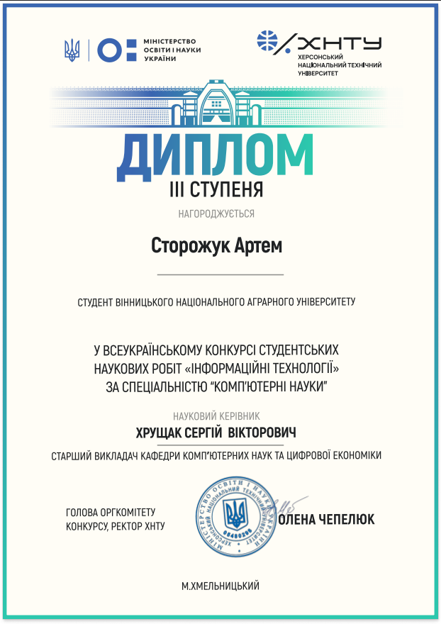 Посада: завідувач кафедри, доцент кафедри комп’ютерних наук та цифрової економіки Вінницького національного аграрного університету