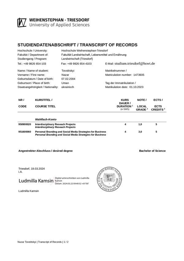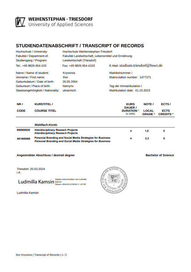 - Договір про співпрацю з Академією Агробізнесу в м. Ломжа (Польща)