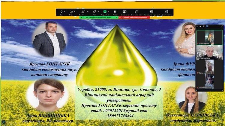 2 місце – стартап факультету менеджменту та права GREENDIESEL, який представляє комплексну модель виробництва, просування та комерціалізації біодизеля на базі студентських фермерських господарств ВНАУ. Автори: к.е.н., доцент Ярослав Гонтарук, к.е.н., доцент Ірина Фурман, студентки Олександра Марківська та Діана Водяницька.