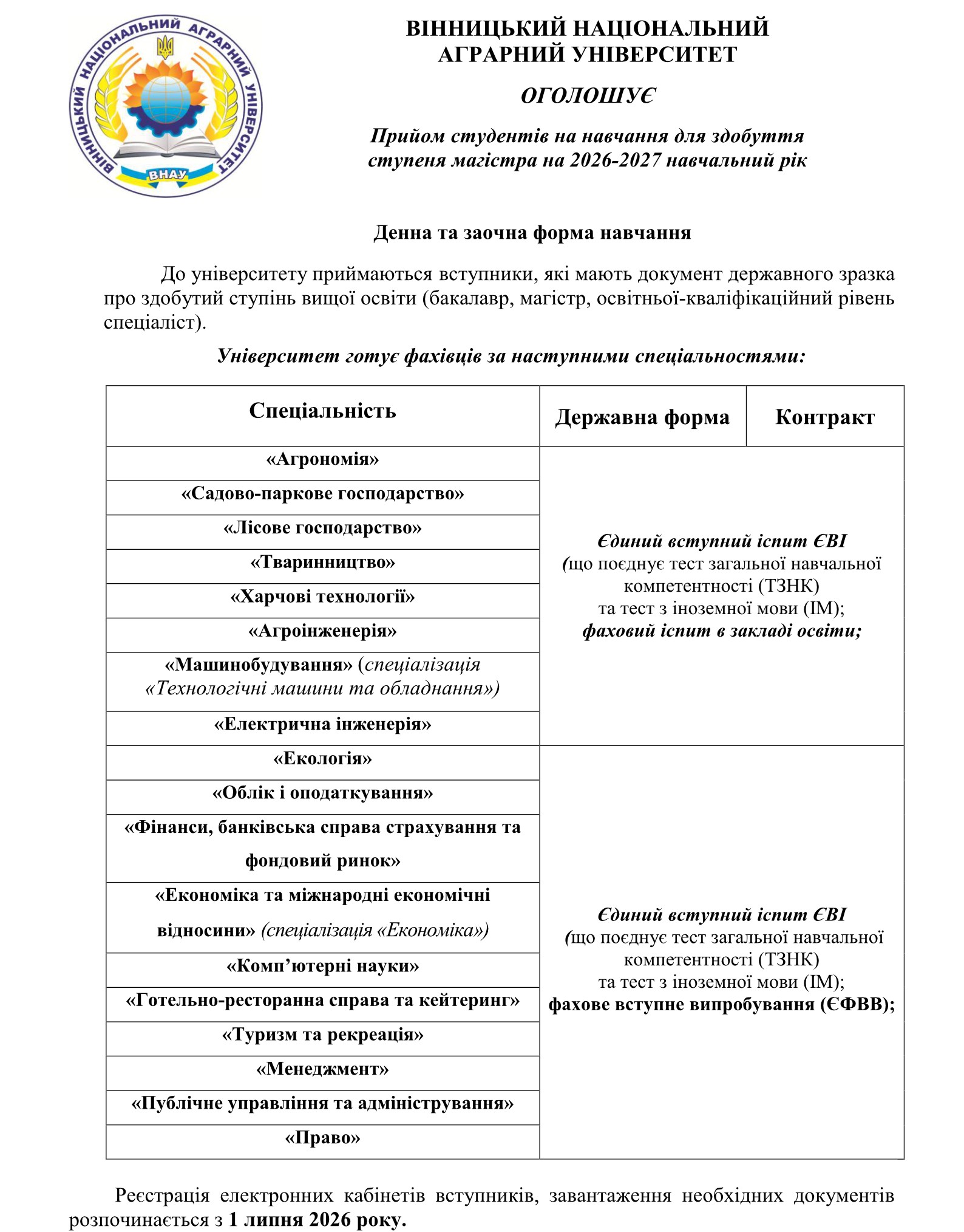 21008 м. Вінниця, вул. Сонячна, 3 (корпус № 1); тел.: (0432) 46-74-37; e-mail: pk_vnau@ukr.net; https://vsau.org/ |