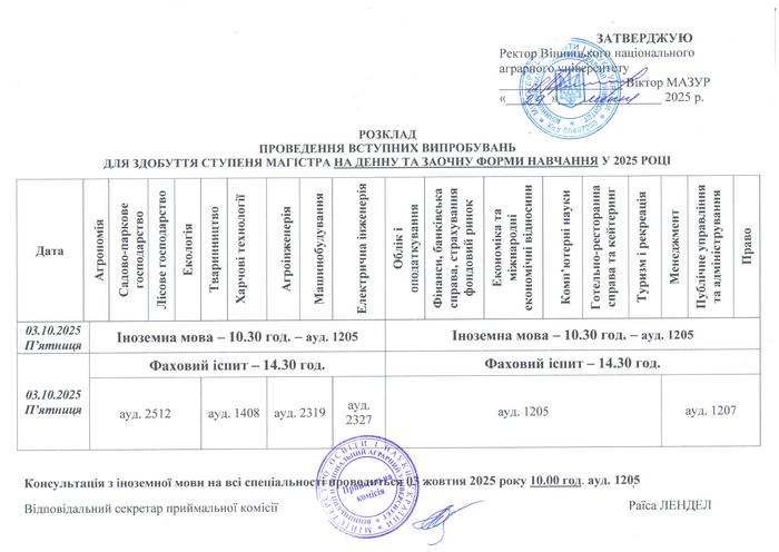 Результати фахового вступного випробування для здобуття ступеня магістра (19.08.2025 р.)