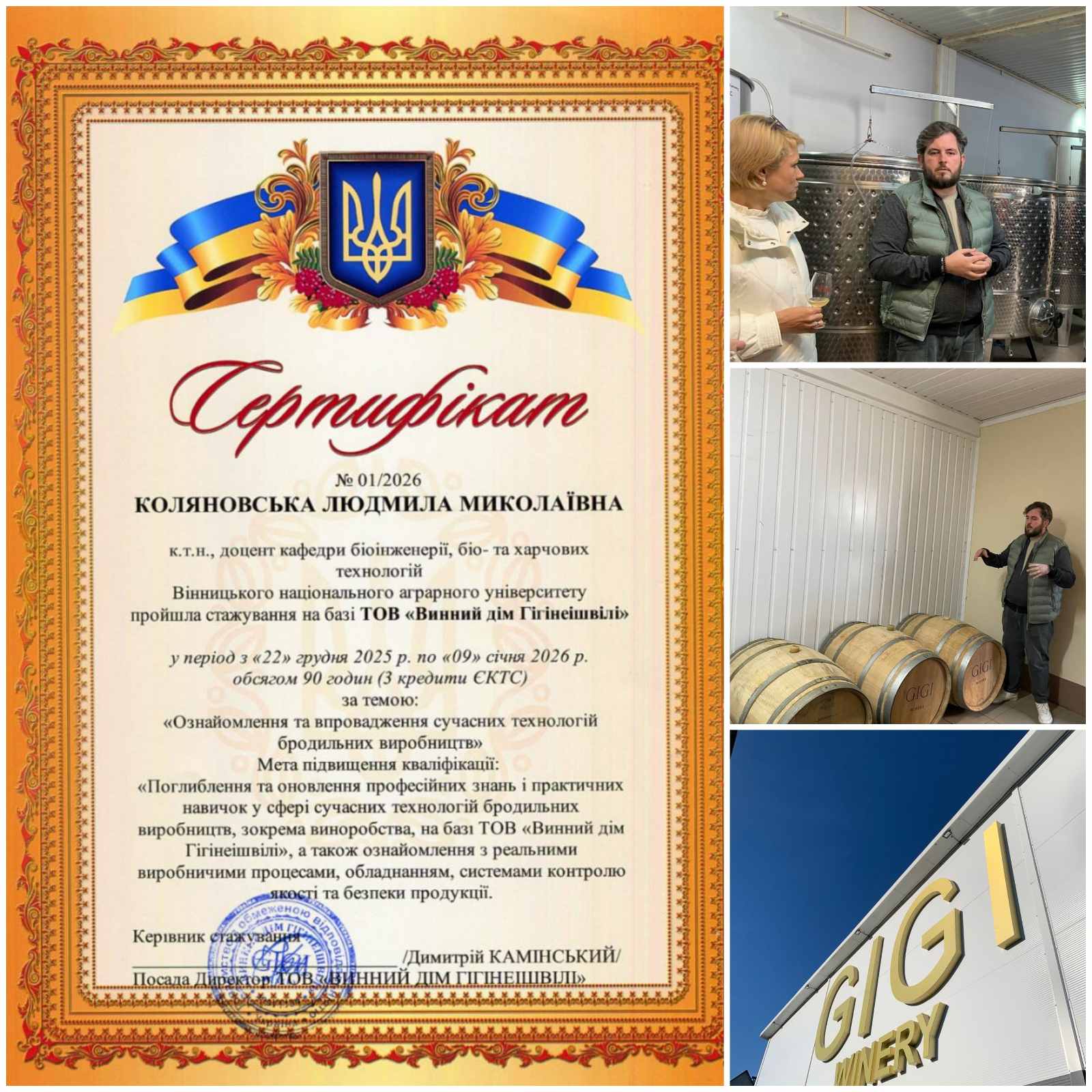 Пройшла підвищення кваліфікації (стажування) за кордоном у Wyższa Szkoła Biznesu – National – Louis University, Nowy Sacz, Poland (з 09 січня 2018 року по 16 січня 2018 року – дистанційна робота, з 17 січня 2018 року по 20 січня року – безпосереднє стажування в університеті на території Польщі, сертифікат закордонного стажування WK/4769, від 20.01.2018 року). Підписано договір про партнерство, співробітництво та науковий обмін між Вінницьким національним університетом та в Wyższa Szkoła Biznesu – National – Louis University, м. Новий Сонч, Польща.