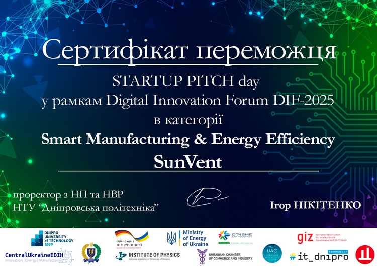 24 жовтня 2025 року відбувся фінальний етап конкурсу стартапів «Інноваційні рішення для сталого майбутнього» (Startup Pitch Day of Digital Innovation Forum – 2025).