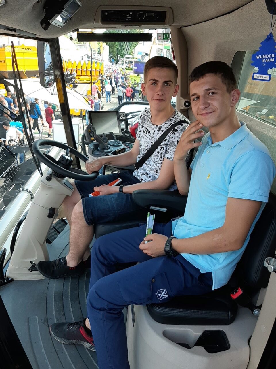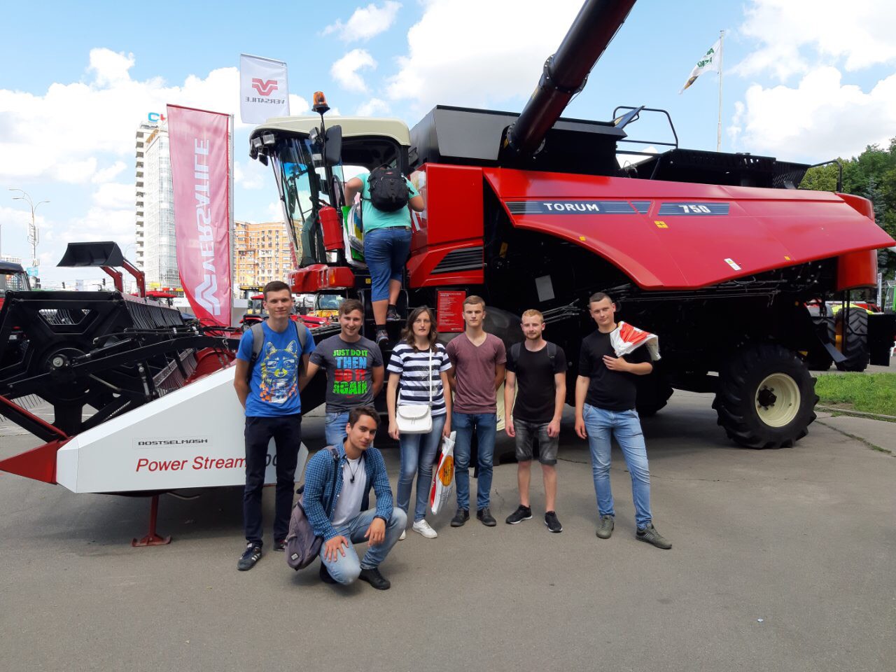 Під час екскурсії студенти уважно оглянули виставкові зразки, посиділи в кабінах тракторів і комбайнів, зазирнули «під капоти» машин, взяли участь у тест-драйвах тракторів та автомобілів сільськогосподарського призначення.
