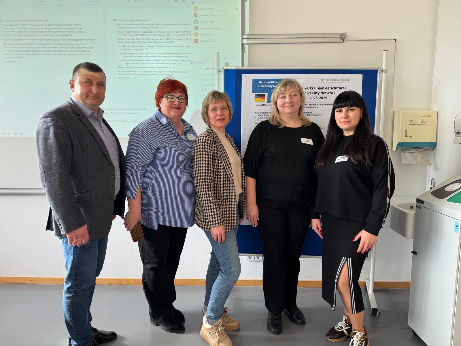 За результатами представлених освітньо-наукових матеріалів делегацією ВНАУ Професор Ральф Шлаудерер урочисто вручив 13 учасникам університету та його коледжів сертифікати за участь у тижневому воркшопі “German-Ukrainian Agriculture University Network 2025–2029” та подарував памʼятне фото на згадку про спільну роботу.