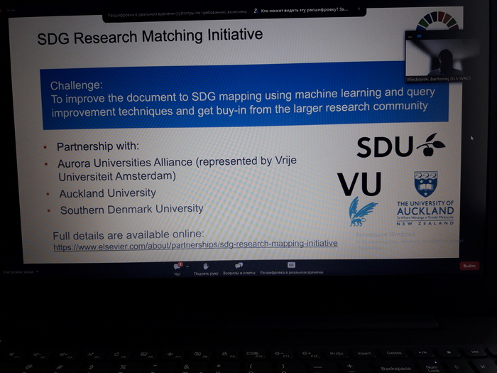 26 жовтня 2022 року було проведено вебінар від компанії Elsevier на тему: SDGs: How to assess social impact. На вебінарі учасники обговорили представлення SDG в аналітичних рішеннях Elsevier та використання цієї інформації для подальшої оцінки досліджень.