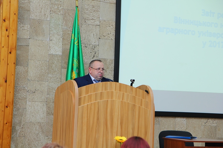 Конференція розглянула одне із найважливіших питань – звіт ректора за 2017 рік. Ректор університету Віктор Мазур зазначив: «Рік, що минув, був ознаменований для нас певними здобутками, про це свідчить організованість, відповідальність та згуртованість колективу». 2017 рік був особливим з погляду наукової, освітньої, виховної і господарської діяльності університету. Віктор Анатолійович відзначив клопітку злагоджену працю всього колективу у здобутках та зміцненні позитивного іміджу університету. Вагомим досягненням є те, що університет – співзасновник Всеукраїнського науково-навчального консорціуму. Важливим кроком у розвитку науки нашого університету стала міжнародна співпраця Консорціуму з Технічним університетом у м. Зволен, Університетом ветеринарної медицини і фармацевтики у м. Кошице та Словацьким сільськогосподарським університетом у Нітрі.