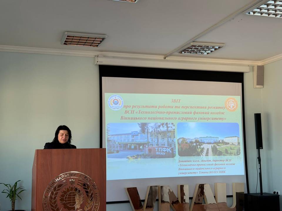 - звіти про результати роботи та перспективи розвитку: факультету менеджменту та права - доповіла декан факультету Людмила Пронько та Технологічно-промислового фахового коледжу ВНАУ – доповіла директор коледжу Тетяна Колесник;
