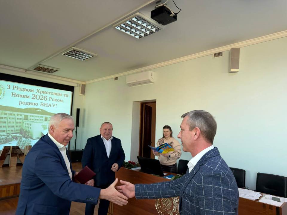 Підсумовуючи роботу Вченої ради та діяльність університету протягом року, Григорій КАЛЕТНІК подякував колективу за плідну працю, наукові здобутки, освітні ініціативи та професійну відповідальність. Григорій Миколайович висловив слова вдячності Збройним Силам України за захист нашої держави й можливість навчатися та розвиватись. Голова Вченої ради побажав усій університетській родині миру, добра та щасливих новорічних свят, які надихатимуть на нові здобутки й успіхи у новому 2026 році!