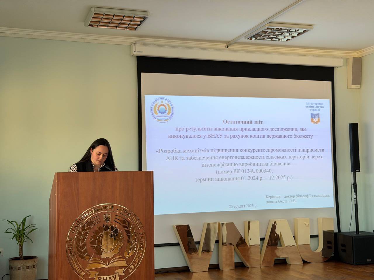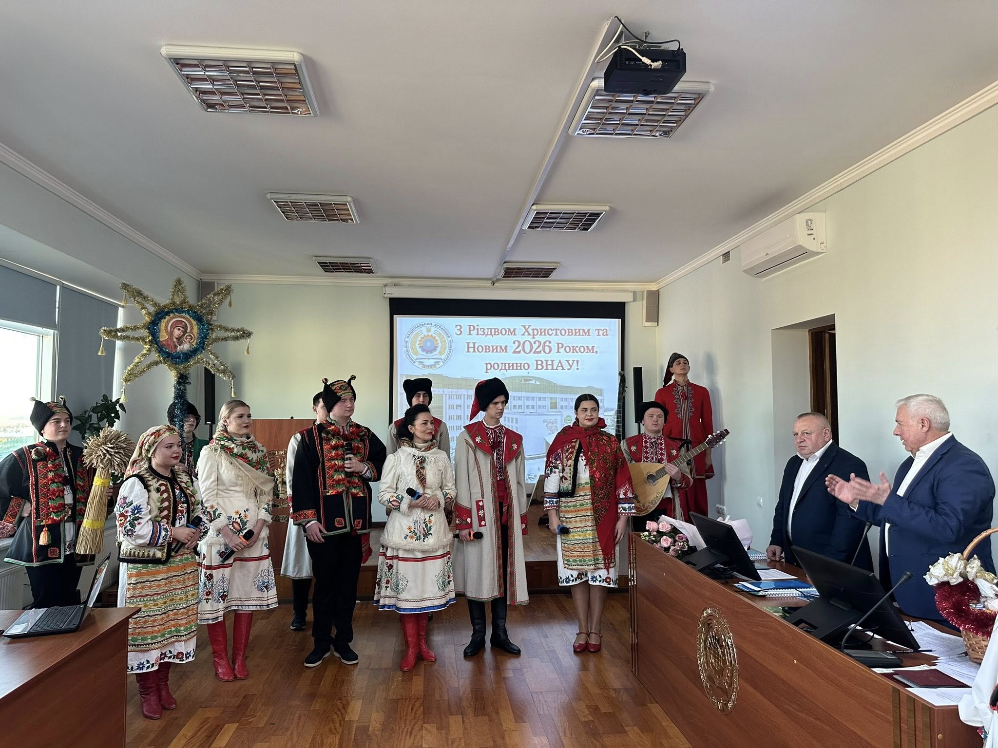 У Вінницькому Національному Аграрному Університеті відбулось підсумкове засідання Вченої ради. Розпочалось засідання яскравим творчим виступом обдарованої молоді Центру культурно-естетичного виховання ВНАУ під керівництвом директора Центру Дар’ї Довгань. У виконанні талановитих студентів неперевершено звучали українські колядки, щирі віншування та теплі побажання, якими учасники виступу привітали колектив Вченої ради з прийдешніми Новорічними та Різдвяними святами, подарувавши присутнім гарний настрій і відчуття єдності та поваги до українських традицій.