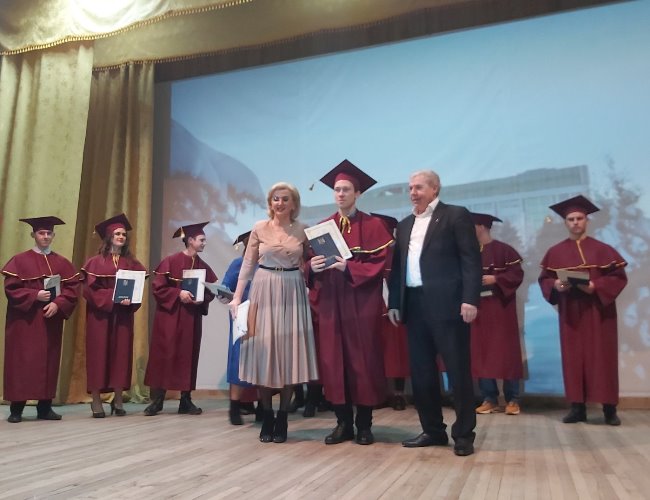 Григорій Калетнік сердечно подякував батькам за виховання гарних патріотичних, ціленаправлених, відповідальних дітей. Побажав всім добра, здоров’я, мирного неба, родинного благополуччя. Та разом з деканами факультетів Оксаною Скоромною, Іриною Сальковою і Віктором Матвійчуком вручили такі бажані, омріяні дипломи магістрів.