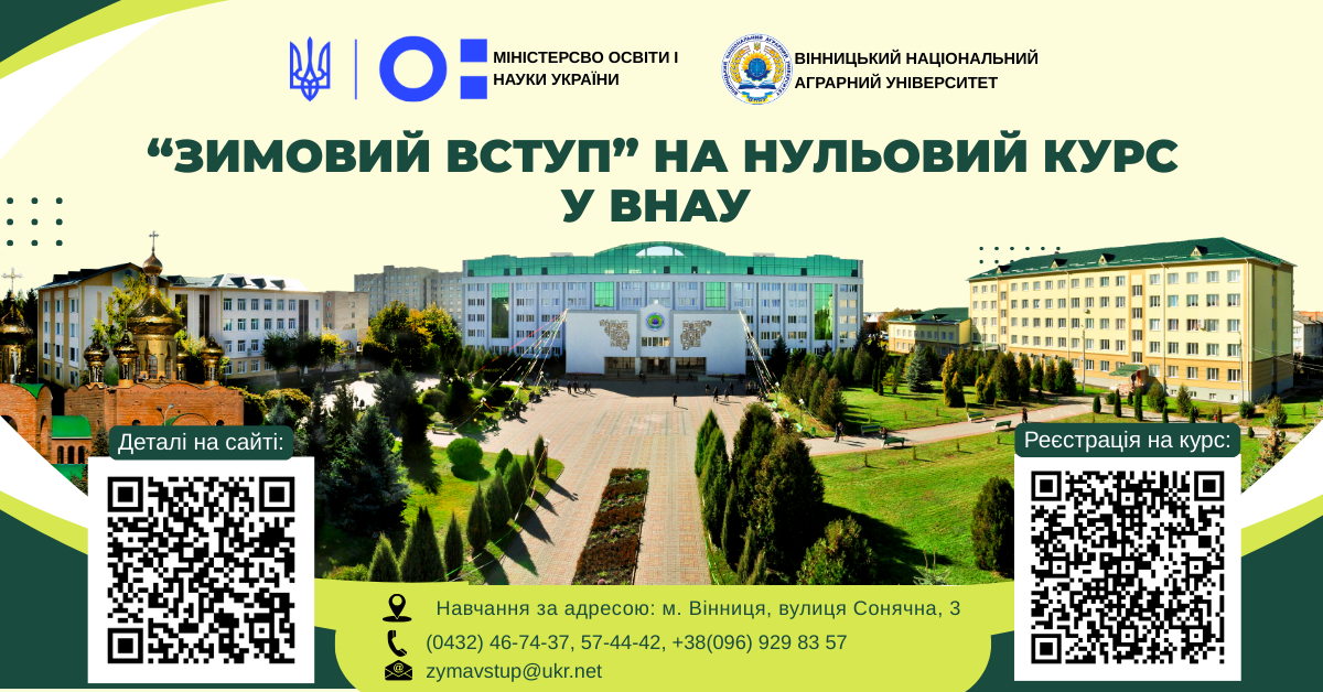 Вінницький національний аграрний університет оголошує набір слухачів на нульовий курс у межах експериментального проєкту «Зимовий вступ»!