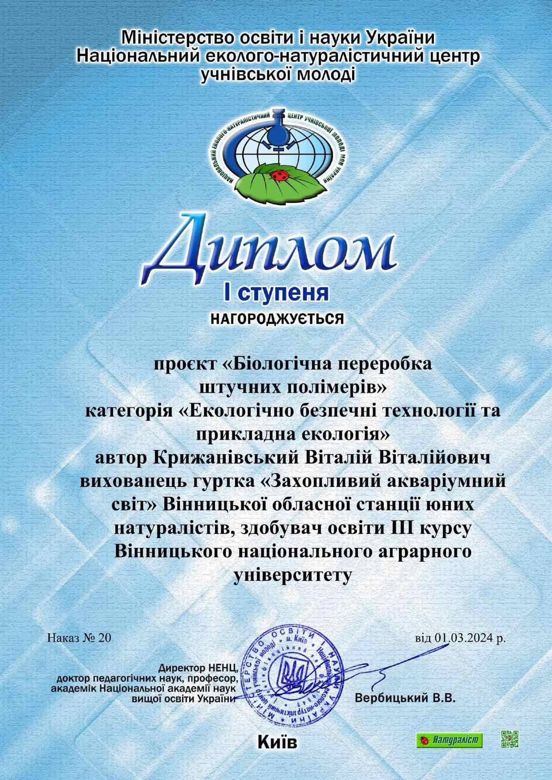 - Vradii O., Mudrak H., Alieksieiev O. Application of biological preparations on the crops of perennial leguminous grasses as a means of providing soils with atmospheric nitrogen. Ecology, Biotechnology, Agriculture and Forestry in the 21st century: problems and solutions: Edited by S. Stankevych, O. Mandych. Tallinn: Teadmus OÜ, 2024. P. 252–269.