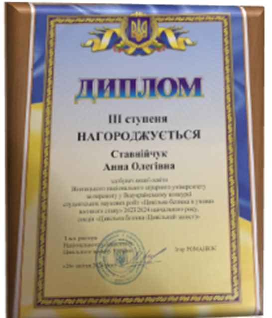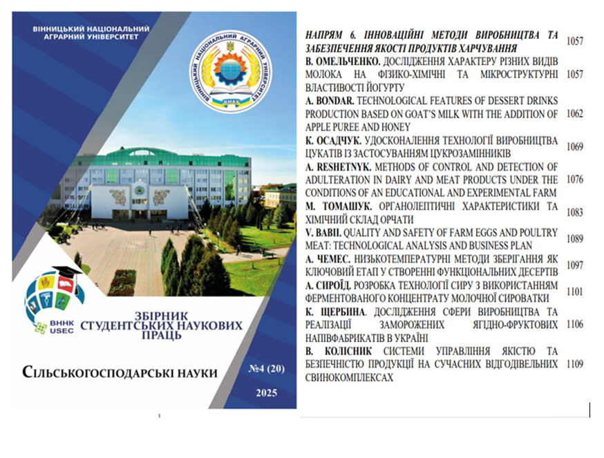 2. Студентська наукова конференція «Інноваційні підходи до виробництва у тваринництві та харчовій галузі» Віннницький національний аграрний університет, 11 грудня 2025 року