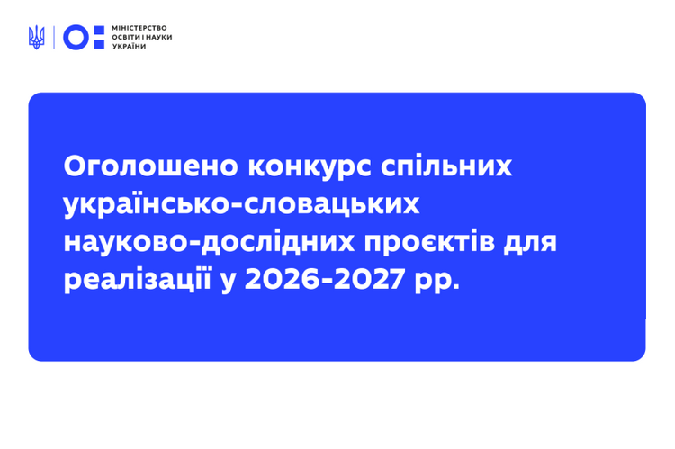КОНКУРС СПІЛЬНИХ УКРАЇНСЬКО-СЛОВАЦЬКИХ НАУКОВО-ДОСЛІДНИХ ПРОЄКТІВ НА 2026-2027 РОКИ
