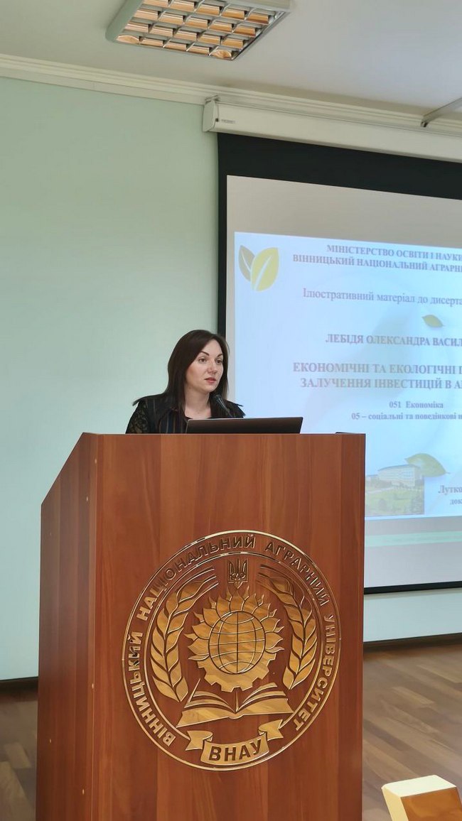 Науковий керівник: доктор економічних наук, професор, проректор з науково-педагогічної та навчальної роботи Світлана ЛУТКОВСЬКА. Аспірант доповів за темою дисертації «Економічні та екологічні передумови залучення інвестицій в АПК України».